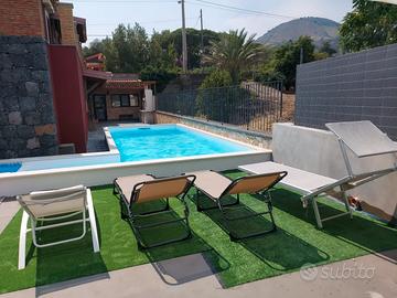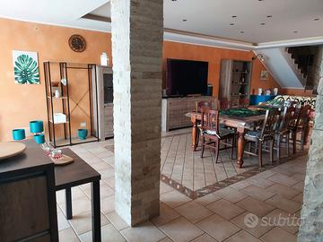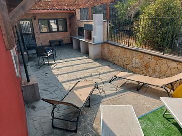 E' dislocata su 3 livelli ed è composta da un piano cantinato di 150 mq con cucina attrezzata, cucinino, ampio soggiorno con divano letto matrimoniale e divano letto singolo, camera da letto matrimoniale, 2 bagni di cui uno con doccia. I piani superiori sono composti da 4 camere da letto (2 letti matrimoniali e 2 letti da 1 piazza e mezzo) e 2 bagni con doccia. Inoltre, potrete godere dei comfort moderni, tra cui Wi-Fi e smart TV 75". La parte esterna, a vostro ad uso esclusivo, comprende una piscina interrata da 7x2,80 mt con relativo solarium da 50mq, barbecue, tavolo da pranzo e un angolo relax con una superficie di circa 3.5x10mt + 6x4mt comprensivi di sdraio, salottino e cielo stellato.