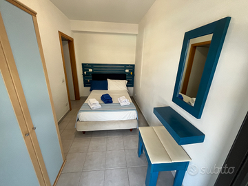 Casa vacanze, ideale per 4/6 persone, così composta: prima camere con letto matrimoniale, seconda camera con letto una piazza e mezza,soggiorno/cucina con divano letto due posti, bagno, posto auto, giardino privato recintato e piscina condominiale, con accesso riservato x 5 persone con lettini e ombrellone.