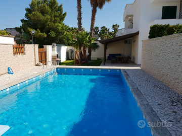 IT075043C200051800 La casa è situata a torre dell'orso, in una zona tranquilla circondata dal verde a pochissima distanza dalla spiagge ( circa 900m ) ed è anche vicina ad altre marine come San Foca, Sant'Andrea, Roca, Laghi Alimini, Otranto etc. Nelle vicinanze sono situati bar, supermercati, parco divertimenti, pizzerie, bracerie etc. Per quanto riguarda la DESCRIZIONE DELLA CASA, è composta da 2 camere da letto, 5 posti letto ( una camera da letto matrimoniale con lettino aggiunto, ed una camera doppia con letti anche avvicinabili) e per esigenze particolari disponiamo del divano letto matrimoniale, tinello soggiorno e angolo cottura (provvisto di stoviglie), bagno con doccia all' interno e un'altra all' esterno.la casa è dotata di un bel giardino con splendida piscina ( 5m x 10m e altezza da 1,50 ai 2 metri)dove passare piacevoli giornate in compagnia di amici e famiglia. la casa è fornita dei seguenti elettrodomestici: Frigo, TV, Microonde, lavatrice, climatizzatori caldo freddo, fono, ferro da stiro, barbecue. Acqua luce e gas tutto compreso. inoltre compresi anche 2 posti auto (uno al coperto)rimane a c. NOTE: la casa è disponibile in affitto da metà marzo fino a fine settembre, la manutenzione e la pulizia della piscina è A CARICO DEL PROPRIETARIO nelle prime ore del mattino senza disturbo per gli affittuari dato che la villetta dispone di una seconda entrata nel retro che usano SOLO i proprietari, L'inizio del soggiorno parte dalle ore 15 del giorno di prenotazione e termina alle ore 9 dell ultimo giorno per consentire i lavori di pulizia. per info su altre foto o per altre informazioni supplementari contattare Paola 3204130446(tassa di soggiorno a carico del turista