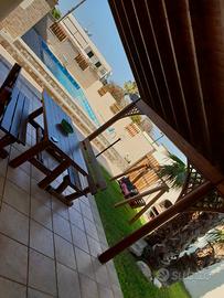 IT075043C200051800 La casa è situata a torre dell'orso, in una zona tranquilla circondata dal verde a pochissima distanza dalla spiagge ( circa 900m ) ed è anche vicina ad altre marine come San Foca, Sant'Andrea, Roca, Laghi Alimini, Otranto etc. Nelle vicinanze sono situati bar, supermercati, parco divertimenti, pizzerie, bracerie etc. Per quanto riguarda la DESCRIZIONE DELLA CASA, è composta da 2 camere da letto, 5 posti letto ( una camera da letto matrimoniale con lettino aggiunto, ed una camera doppia con letti anche avvicinabili) e per esigenze particolari disponiamo del divano letto matrimoniale, tinello soggiorno e angolo cottura (provvisto di stoviglie), bagno con doccia all' interno e un'altra all' esterno.la casa è dotata di un bel giardino con splendida piscina ( 5m x 10m e altezza da 1,50 ai 2 metri)dove passare piacevoli giornate in compagnia di amici e famiglia. la casa è fornita dei seguenti elettrodomestici: Frigo, TV, Microonde, lavatrice, climatizzatori caldo freddo, fono, ferro da stiro, barbecue. Acqua luce e gas tutto compreso. inoltre compresi anche 2 posti auto (uno al coperto)rimane a c. NOTE: la casa è disponibile in affitto da metà marzo fino a fine settembre, la manutenzione e la pulizia della piscina è A CARICO DEL PROPRIETARIO nelle prime ore del mattino senza disturbo per gli affittuari dato che la villetta dispone di una seconda entrata nel retro che usano SOLO i proprietari, L'inizio del soggiorno parte dalle ore 15 del giorno di prenotazione e termina alle ore 9 dell ultimo giorno per consentire i lavori di pulizia. per info su altre foto o per altre informazioni supplementari contattare Paola 3204130446(tassa di soggiorno a carico del turista