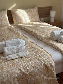 'Melannie's Apartment 2' a three-room apartment of about 80 square metres suitable for up to 6 people. It is located in via Giacomo Quarenghi N. 58, three hundred metres from the Gavazzeni Clinic and a short walk from the centre of Bergamo . In about five minutes on foot you can reach the train station and the city centre, while the bus stop is just down the road. Located in an elegant condominium, Melannie's Apartment 2 consists of 2 bedrooms each with a double bed and a single bed, dining area kitchen bathroom and large terrace. The flat is equipped with all the necessary appliances including TV and Wi-Fi internet and equipped for every need. Supermarket, restaurants, pizzerias, car parks and other shops nearby. Prices from 120 ? per night (2 people), 140 ? per night (4 people), 170 ? per night 6 people), 190 ? per night 6 people), including bed linen, bathroom kit, hair dryer and courtesy set. no extra charge for final cleaning.