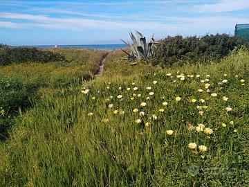 Casa fronte mare con spiaggia ,attrezzata e con ampi spazio esterni. Due docce esterne,due bici a disposizione, tavoli, sedie e poltroncine, amaca nel giardino. Max sei persone per famiglia con bambini ( o minorenni),altrimenti max cinque. Alla somma dell'affitto é da aggiungere la quota di soggiorno. A Giugno il prezzo settimanale é di 1300,a Luglio e ad Agosto di 2300, a Settembre di 1300.La casa é disponibile per la seconda metà del mese di Giugo,per la prima metà del mese di Luglio