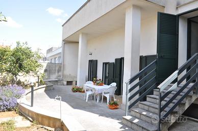 Alloggio indipendente al piano terra composta da ingresso, cucina attrezzata di tutto il necessario, bagno, una camera con letto matrimoniale e la seconda camera con due letti singoli. Tutte le stanze sono con volte a stella. Sul retro un comodo e ampio giardino per il relax. E' situato nel comune di Presicce-Acquarica su una via non esposta al traffico, il parcheggio è gratuito sulla pubblica strada davanti casa.