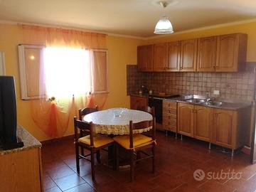 Comprende: camera matrimoniale, una camera con due letti singoli, cucina con soggiorno e (*divano letto), bagno con doccia, veranda (con tavolo, sedie e tettoia), barbecue, lavatrice, frigorifero, fornetto, Tv, accessoriata e corredata di biancheria.