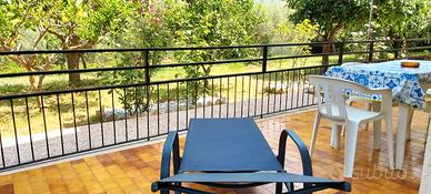 A Mongiove, frazione del comune di Patti in provincia di Messina, in una villa situata nel bel mezzo di un agrumeto / uliveto a due passi dal mare, trovasi l'appartamento arredato di 98mq composto da 3 camere da letto oltre a cucina, ripostiglio con lavatrice, bagno e un'ampio terrazzo con BBQ e doccia.