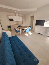1 camere da letto (3 posti letto)+ 1 divano letto in soggiorno-cucina con lavastoviglie, frigorifero, forno a microonde, tv, divano, bagno con lavatrice, terrazzino, aria condizionata e wifi.