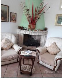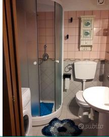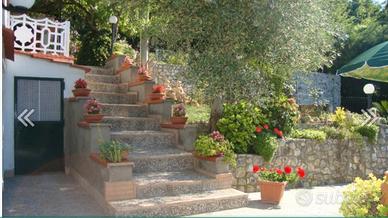 E' costituita da una grande sala con angolo cottura attrezzato, un bagno con box doccia e con lavatrice, una cameretta e una camera da letto e una veranda esterna con tavolo per mangiare, il tutto 80mq. e compreso di parcheggio all'interno della villa.