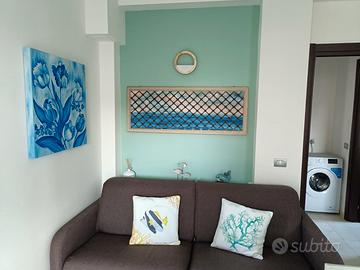 Rilassati e ricaricati in un'oasi di quiete ed eleganza del Parco del Conero. Il nostro grazioso bilocale che si trova all'interno di un esclusivo resort a soli 400 metri dal lungomare Sud di Numana . In estate sono a disposizione dei nostri ospiti due piscine, un campetto polivalente (tennis/calcetto), un servizio navetta gratuito offerto dal comune di Numana. Proponiamo un moderno appartamento posto al piano terra con ingresso privato composto da: un soggiorno con tavolo, sedie e divano letto matrimoniale; una cucina componibile con piano-cottura ad induzione, forno a microonde, frigo-congelatore, lavastoviglie, smart-tv e macchina da caffè; una spaziosa camera da letto con letto matrimoniale e letto singolo a scomparsa; un bagno dotato di vasca da bagno con doccia, bidet, wc, lavabo e lavatrice; aria condizionata; veranda esterna per pranzare all'aperto e giardino privato. Posto auto gratuito all'interno del residence. A richiesta del cliente: n.2 bici da passeggio.