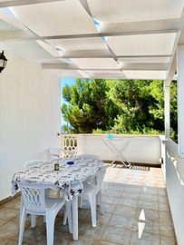 L'appartamento si compone di ampia cucina, due stanze da letto (5 posti+1), bagno e due verande, entrambe adibite con tavoli e sedie per poter mangiare all'aperto + tende da sole.