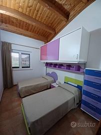 Soluzione ideale per gruppi e famiglie numerose, appartamento di 80mq circa totalmente ristrutturato, può ospitare fino a 8 persone, composta da soggiorno-cucina (presente divano letto), una camera da letto matrimoniale e una camera con due letti singoli, più un letto a castello adiacente, 2 bagni di cui 1 con doccia e altro di servizio, oltre a 15 mq di terrazzino coperto fronte piscina.