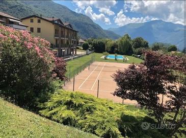 Incantevole bilocale con piscina e campo da tennis privati, disponibile per affitto transitorio casa vacanza min. 4 settimane per i mesi di Maggio, Giugno, Luglio e Settembre. Il bilocale si trova in un residence in prima collina di Colico, a 1,5 km dal centro e dalle spiagge del lago. La zona è molto tranquilla, ideale per relax lontano dal caos, ottimale anche per smart working. La casa è attrezzata di tutto, perfetta per una coppia o una famiglia con un bambino. Una camera con letto matrimoniale e un divano letto in area leaving. La piscina, con bellissimo panorama sul lago, è aperta dal 1/06 al 30/09. Prezzo: 1000 Euro Maggio; 1300 Euro Giugno; 1600 Euro Luglio; 1000 Euro Settembre. Cauzione 300 Euro che verrà restituita al checkout salvo eventuali danni. Spese utenze forfettarie Euro 70/mese, pulizia finale Euro 75. No commissioni di agenzia.