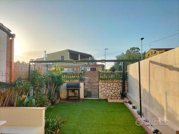 Casa a schiera di 50 mq a piano terra con una camera da letto matrimoniale, una cameretta con letto a castello triplo (il letto in basso è alla francese - larghezza 140 cm), un soggiorno/cucina, un bagno, resede coperto e giardino. L'immobile ha un ingresso autonomo ed è completamente arredato, aria condizionata, barbecue, lavatrice, doccia esterna, con un parcheggio gratuito nelle immediate vicinanze o lungo la strada. Set asciugamani/lenzuola all'occorrenza da pagare a parte. Consumo di energia elettrica: fino a 100 kw a settimana / 14 kw al giorno compreso nel prezzo. Oltre tale consumo: 1,00 Euro per ogni kw extra. A circa 100 mt, c'è una spiaggia con sassi, a 150 mt. accanto alla spiaggia del Resort Seghientu c'è una spiaggia con sabbia, a circa 600 mt. c'è la spiaggia di Santa Luria con sabbia. Queste spiagge sono raggiungibili a piedi. Nelle vicinanze si trova il porto turistico Marina di Capitana, dove è possibile utilizzare servizi quali: scuola di vela, centro diving e noleggio di barche, auto e moto.