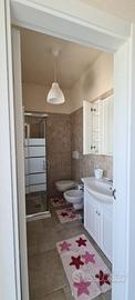 Bagno dotato di doccia con box in vetro temperato, lavandino, bidet e water