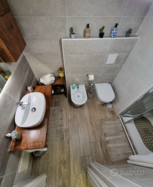 La casa è un basso tipicamente Napoletano: giù trovi la cucina, il divano letto alla francese e il bagno, mentre sopra c'è una camera da letto con guardaroba aperto.