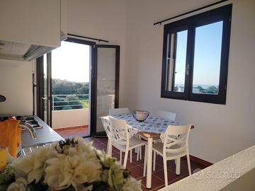 Nella costa sud orientale casa composta da due appartamenti indipendenti, immersa nella natura, circondata da ulivi, con ampi spazi esterni, verande vista mare, doccia all aperto, Wi-Fi, aria condizionata, parcheggio, cucina attrezzata, due camere da letto, bagno.il mare e' raggiungibile a piedi con spiaggia di sabbia adatta ai bambini.Disponibile da giugno a ottobre.affitti settimanali.prezzo a partire da €100/notte variabile in base al periodo e alla durata del soggiorno