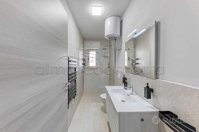 Il bagno completo di box doccia è moderno e elegante, con tutti i comfort che ci si aspetta da un alloggio di questo livello.