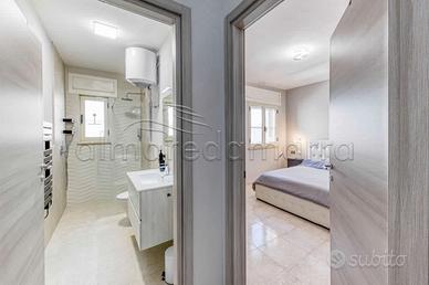 Il bagno completo di box doccia è moderno e elegante, con tutti i comfort che ci si aspetta da un alloggio di questo livello.