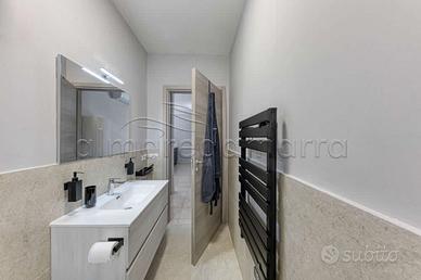 Il bagno completo di box doccia è moderno e elegante, con tutti i comfort che ci si aspetta da un alloggio di questo livello.