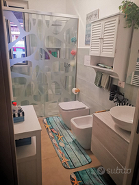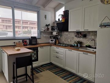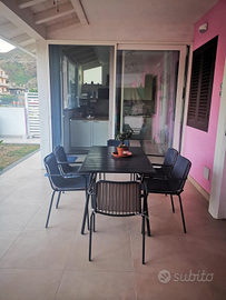 L'appartamento è situato al piano terra con giardino, terrazzo, una doccia esterna ed una lavanderia al chiuso con un secondo bagno. Un grande open-space con cucina soggiorno, 1 camera matrimoniale, una seconda camera con 1 letto a castello da 1 piazza e mezza ed uno singolo, un bagno. Posto auto riservato all'interno del condominio. E' inoltre dotato di wifi, lavatrice, condizionatore in tutte le camere, macchina del caffè, asciugacapelli, stendibiancheria, stoviglie, prodotti per la pulizia, n. 2 biciclette a disposizione. Animali di piccola taglia ammessi.