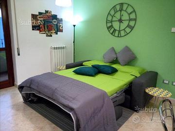 B&B intero appartamento arredato composto da ingresso/soggiorno con angolo cottura e divano trasformabile all'occorrenza in letto 2 posti. Camera letto matrimoniale, bagno con vasca idromassaggio, doccia, set cortesia (asciugamani, shampoo/doccia, balsamo capelli inclusi)