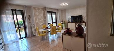REAL ESTATE MENASSI E BESSI con sede a Capriolo viale IV Novembre 1, sono lieti di proporre per affitti brevi e/o transitori, l'alloggio (NO RESIDENZA MAX 30 GG) CASA VACANZA PEONIA, l'alloggio è situato all'interno di una palazzina con poche unità, posto al piano terra e finemente ristrutturato in stile moderno e di ampie metrature, così composto: ingresso con cucina a vista, completamente attrezzata di elettrodomestici (frigorifero, forno, microonde, lavastoviglie) tutte le attrezzature necessarie, soggiorno con Tv, divano, tavolo da sei posti, la zona giorno accede direttamente alla terrazza con giardino ove poter trascorrere momenti di relax, completano la struttura due spaziose camere di cui una matrimoniale con balcone, completa di letto matrimoniale, armadio stagionale, comò e comodini, camera singola con due lettini, bagno con sanitari e lavatrice.