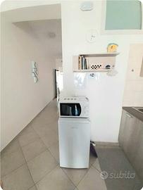 >La cucina ben attrezzata con frigo, tv, divano letto, piatti e utensili per cucinare proprio come fossi a casa tua.