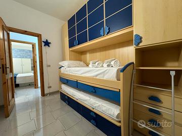 Appartamento al secondo Piano a 100 metri dal mare, di sola sabbia con 3 camere da letto(6 posti letto + 2 opzionali), 2 bagni di cui solo 1 con doccia, cucina, aria condizionata in ogni stanza, terrazzo esterno provvisto di tavolo sedie e lavatrice, parcheggio privato con 2 posti auto custoditi
