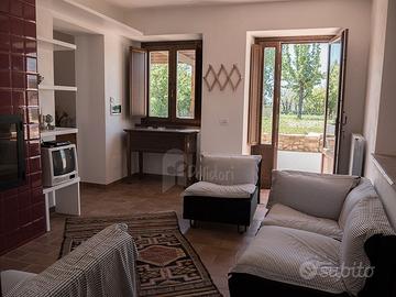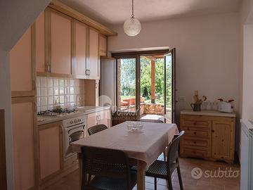 A 1,5 km dal paese di Vacone, in posizione panoramica da mozzafiato, proponiamo per affitti turistici una porzione indipendente di Casale con piscina. La casa completamente ristrutturata e arredata per sette persone, dispone di un accesso privato dal grande giardino recintato con due cancelli pedonali, un antico pozzo romano e una terrazza sia a est che a ovest. Le rifiniture sono di alta qualità e l'arredo è in parte moderno e in parte costituito da mobili antichi Sabini. Al piano terra: soggiorno e una nuova cucina, entrambi con uscita diretta sul terrazzo con portico e giardino sul lato sud-ovest, una camera con accesso al terrazzo orientale e un bagno con doccia. Cucina e soggiorno sono serviti dallo stesso camino che è visibile da entrambi i lati. Al primo piano: 3 camere da letto e un ampio bagno con doccia e vasca. Possibilità di alles. 3 posti auto privati. Classe energetica F, Rif. As 16.