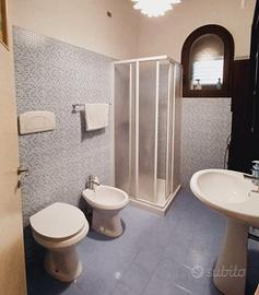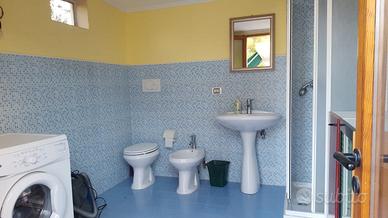3 camere da letto (7 posti letto); due bagni uno esterno e uno interno; cucina, soggiorno/pranzo; attrezzata con lavastoviglie, lavatrice, forno, climatizzata e riscaldata.