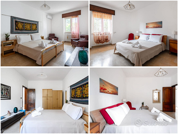 SERVIZI: wi-fi, aria condizionata, ventilatore portatile, camino, zanzariere, TV, biancheria da letto e da bagno, asciugacapelli, zona lavanderia attrezzata, ferro da stiro, kit di pronto soccorso, spazio di lavoro dedicato, cucina con servizi base per cucinare, piatti e posate, lavastoviglie, frigo con cassetti freezer, piano cottura a gas a 5 fuochi, forno a gas e fornetto elettrico; giardino completamente recintato e attrezzato con arredi da esterno, zona pranzo all'aperto, griglia per barbecue, lettini prendisole, dondolo, parcheggio gratuito nella proprietà.