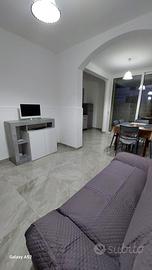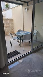 Appartamento con due ampie camere da letto, soggiorno con cucina, bagno con doccia, area esterna con tavolino, lavello, doccia. Parcheggio disponibile su strada davanti all'appartamento. Dotato di condizionatori, lavatrice e utensili per la cucina. CIS: LE07500691000044033 CIN: IT075006C200088014