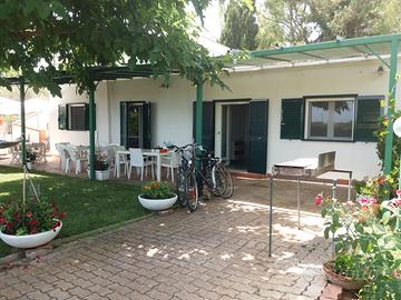 La villa di circa 100 mq è composta da una camera matrimoniale, un'ampia camera con due letti singoli e divano letto, bagno e cucina luminosa. Dispone inoltre di un bellissimo giardino inglese privato, circa 350 mq ed un ampio parcheggio di proprietà.