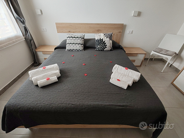 L' appartamento è così composto: Zona living con divano letto matrimoniale con aria condizionata e cucina attrezzata, camera matrimoniale con aria condizionata e bagno con doccia.