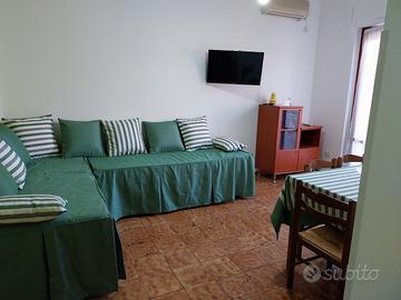Bilocale (4 posti letto). Ingresso, Camera Matrimoniale, Soggiorno Abitabile con due letti singoli., Bagno con Box Doccia, Terrazzo con Veranda e Angolo Cottura. A meno di 100mt dal mare, Smart TV, Lavatrice, Internet Wi-Fi, Riserva Idrica, Aria Condizionata, Zanzariere