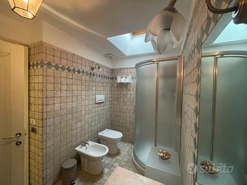 o Un bagno di pregio rivestito in pietra d'Assisi, dotato di tutti i comfort e due box doccia.