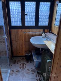 La casa è disposta su due piani, una parte living con stufa a Pellet, forno, cucina, frigorifero, due divani di cui un divano letto.