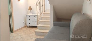 Casa composta da due camere da letto e un bagno nel seminterrato una cucina con un bagno e nel piano terra climatizzata arredata wi-fi e dista dalla spiaggia circa 70 metri