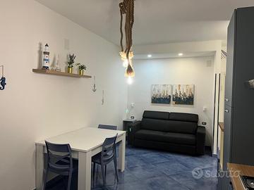 L'appartamento è composto da una stanza da letto matrimoniale, soggiorno con divano letto, 1 bagno e la cucina attrezzata con annesso terrazzino vista mare.