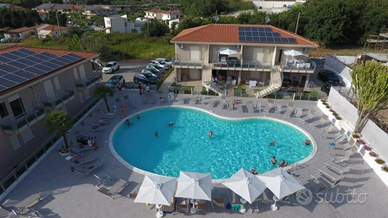 Bellissima casa vacanza situata direttamente sul mare a soli 50 metri dalla spiaggia raggiungibile comodamente a piedi da una strada pedonale interna, dotata di ogni comfort come aria condizionata, parcheggio privato, piscina, lavatrice, composta da due camere da letto di cui una con letto a castello, cucina/soggiorno, bagno e patio esterno.