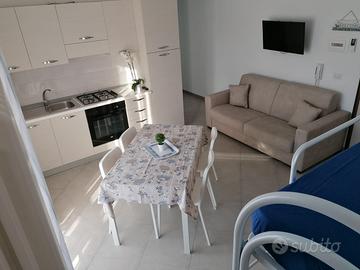 L'appartamento di nuova costruzione, situato al quarto piano di una palazzina con ascensore è l'ideale per chi desidera godere del centro di Vieste e a pochi passi e dal mare (situato a 100 mt dal famoso faraglione Pizzomunno). Ottimo per chi non vuole usare l'auto e muoversi a piedi. Ben arredato, è dotato di frigorifero, lavatrice, climatizzatore, TV LCD a schermo piatto, Wi-Fi gratuito e zanzariere. Composto da zona giorno con cucina abitabile, bagno con ampio box doccia in vetro,camera con letto matrimoniale e letto a castello in cucina. La zona giorno e la camera da letto godono di un ampio balcone. A richiesta è possibile aggiungere lettino da viaggio (culla) gratuitamente. 2 lidi attrezzati raggiungibili a piedi, 1 mini market a 500 mt, bar e ristoranti in zona. Tariffe scontate in relazione alla durata del soggiorno. Occupazione max 4 pax - Consigliata 2 adulti +2 bambini Non accettiamo animali Distanza Spiaggia: 100 metri Posizione appartamento: Via Ruggero Bonghi Per qualsiasi altra informazione, preventivi e foto potete contattarmi senza problemi. CIS FG07106091000015614 CIN IT071060C200051889 email teresa.dimauro@virgilio.it