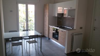 Appartamento in piccola palazzina immersa nel verde , finemente ristrutturato con due camere da letto, a pochi passi dal mare, con posto auto condominiale (disponibile quando libero)