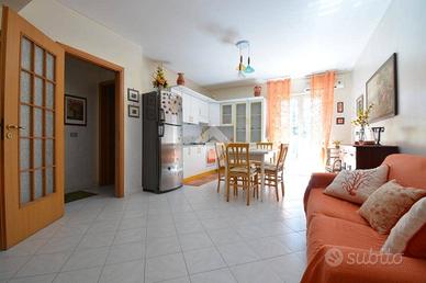 Appartamento arredato sito a pochi mt dal mare con vista Isole Eolie. Dotato di un ampio open space soggiorno/cucina con balcone lato monte, ampia camera da letto e cameretta con balcone lato mare, disimpegno, bagno con doccia, ripostiglio, posto auto coperto riservato, vialetto condominiale fornito di docce comunicante con il lungomare.