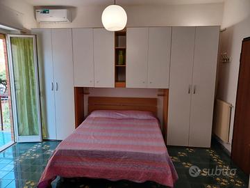 Grande camera con letto matrimoniale con TV 32" con canali digitali, armadio 4 ante. Angolo cottura molto ben attrezzato con 4 fuochi, forno elettrico, frigorifero, macchina per il caffè, stoviglie, caffè, zucchero, bottiglie d'acqua, ecc.