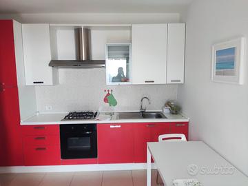 Composto da una zona giorno con divano letto matrimoniale, tv schermo piatto, angolo cottura (con forno, lavastoviglie, frigo etc...), ed una zona notte con un letto matrimoniale. Bagno con doccia e antibagno con lavatrice.