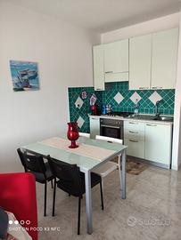 A pochi passi dal mare in località Lu Bagnu, circondato da servizi e comodità, supermercati, farmacia, edicola, bar, ristoranti e pizzerie, situato al primo piano, 3/4 posti letto, arredato e corredato, cucina attrezzata, soggiorno con divano-letto, camera matrimoniale, balcone arredato e bagno con doccia. Fornito di frigorifero, forno, fornello, forno a microonde, macchina del caffè , TV e lavatrice.