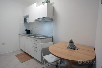 Monolocale di recentissima ristrutturazione situato all'interno di un palazzo storico. 4 posti letto, cucina, bagno con ampia doccia. Phon, piano cottura elettrico, bollitore, tostapane, macchinetta del caffè, forno a microonde, frigo e freezer.