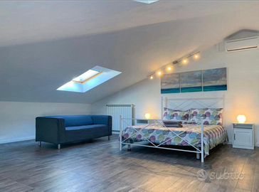 Ampia, luminosa e suggestiva mansarda di 110 mq che ospita fino a 5 persone, con ingresso privato, adatta a coppie, famiglie e gruppi.
