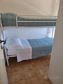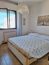 Appartamento a due passi dal mare e dai servizi, composto da due camere, una matrimoniale e una con letto a castello, cucina e bagno. Dotato di aria condizionata, lavastoviglie e lavatrice. Garage per auto.