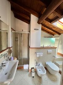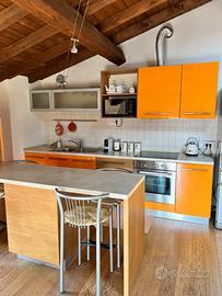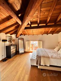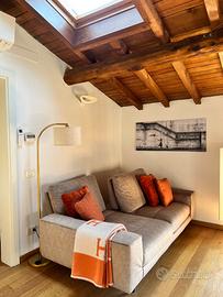 L'appartamento di 60m2 si presenta come una bellissima mansarda con travi di legno a vista, arredata con stile e gusto. All'ingresso si entra direttamente nel soggiorno con cucina dotata di isola e tutto quello che necessita per cucinare, comodo divano con tv e wi-fi. Camera coccolosa e silenziosa con comodo letto matrimoniale e soffici cuscini, piumone e coperte a disposizione, un capiente armadio e cassettiera. Bagno in marmo con ampia doccia che ti garantirà una completa rigenerazione in totale relax, bidet e toilet.