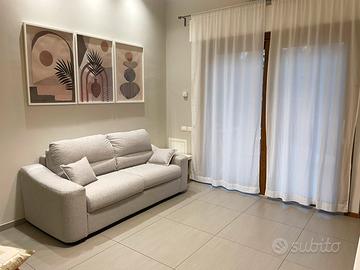 La sistemazione ospita fino a 4 persone, con 1 letto matrimoniale al livello superiore e 1 divano letto alla francese nella zona giorno.